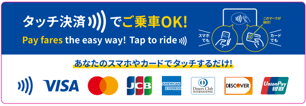 A. ケーブルカー、リフト乗り場で、タッチ決済対応のカード(クレジット、デビット、プリペイド)や、同カードが設定されたスマートフォン等がご利用いただけます。