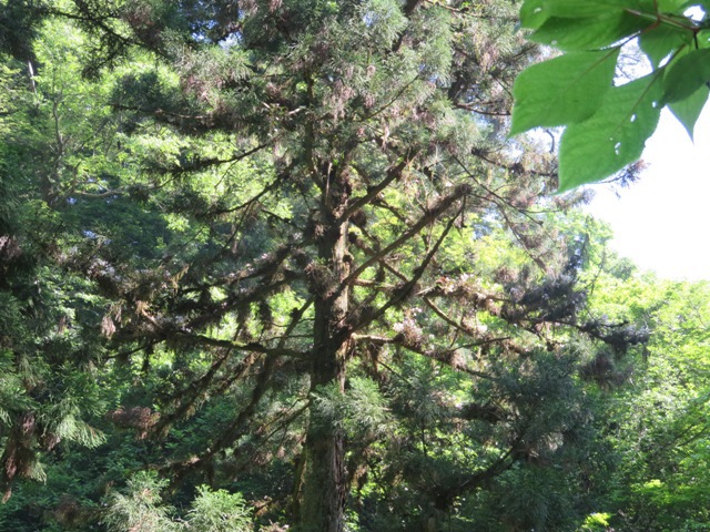 琵琶滝を越えて、ベンチがある所から10分ほど歩いた大木に着生しています。