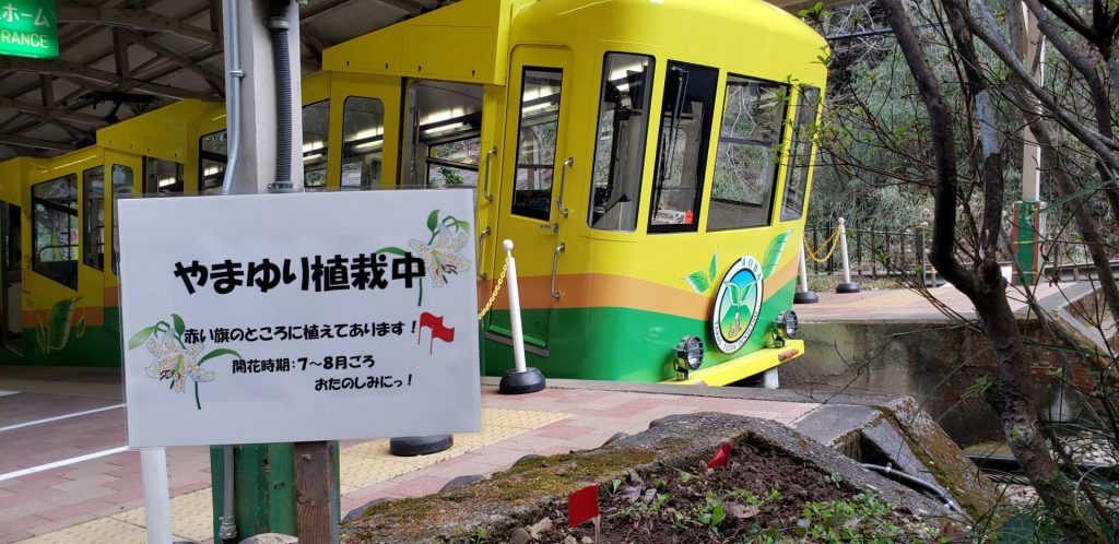 やまゆり第4弾は、ケーブルカー清滝駅乗車ホームに植えました!