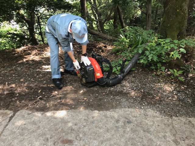 自粛期間中は登山者が少なく、登山道には多くの落ち葉がありましたので、登山道の外へ吹き飛ばします。