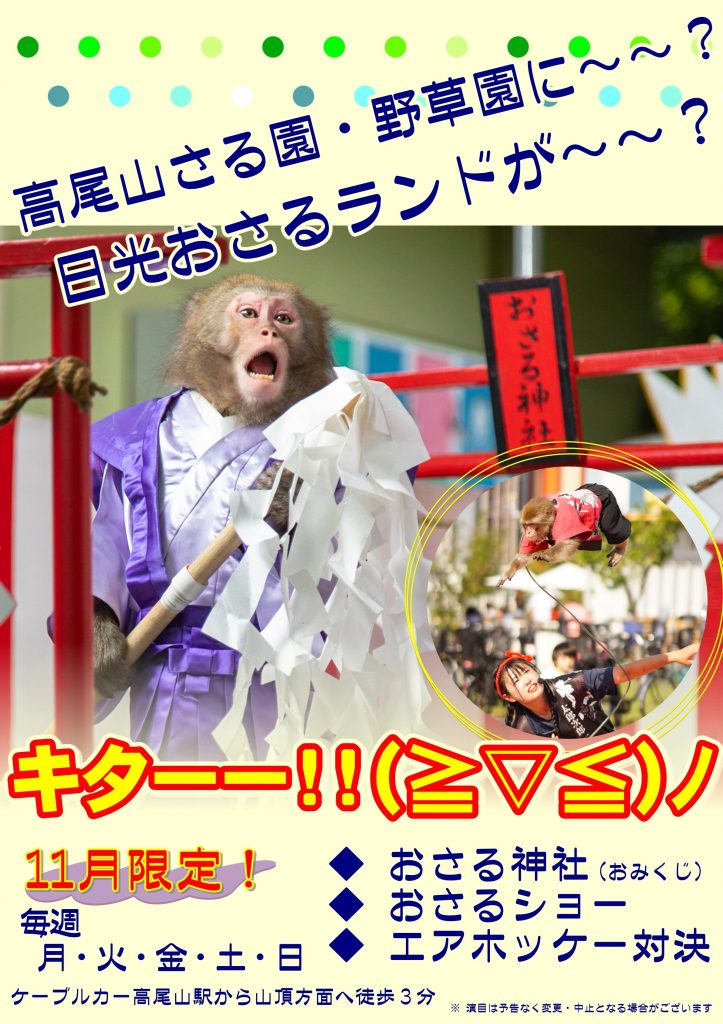 11月の期間中、高尾山さる園・野草園では 日光おさるランドによる特別公演を開催します!