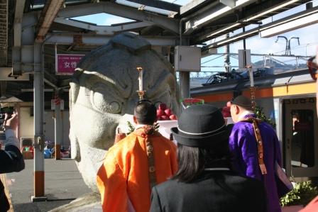 その後、綺麗になった天狗面を前に、薬王院の僧侶による「乗客の安全・中央線の交通安全」の祈願が行われました。