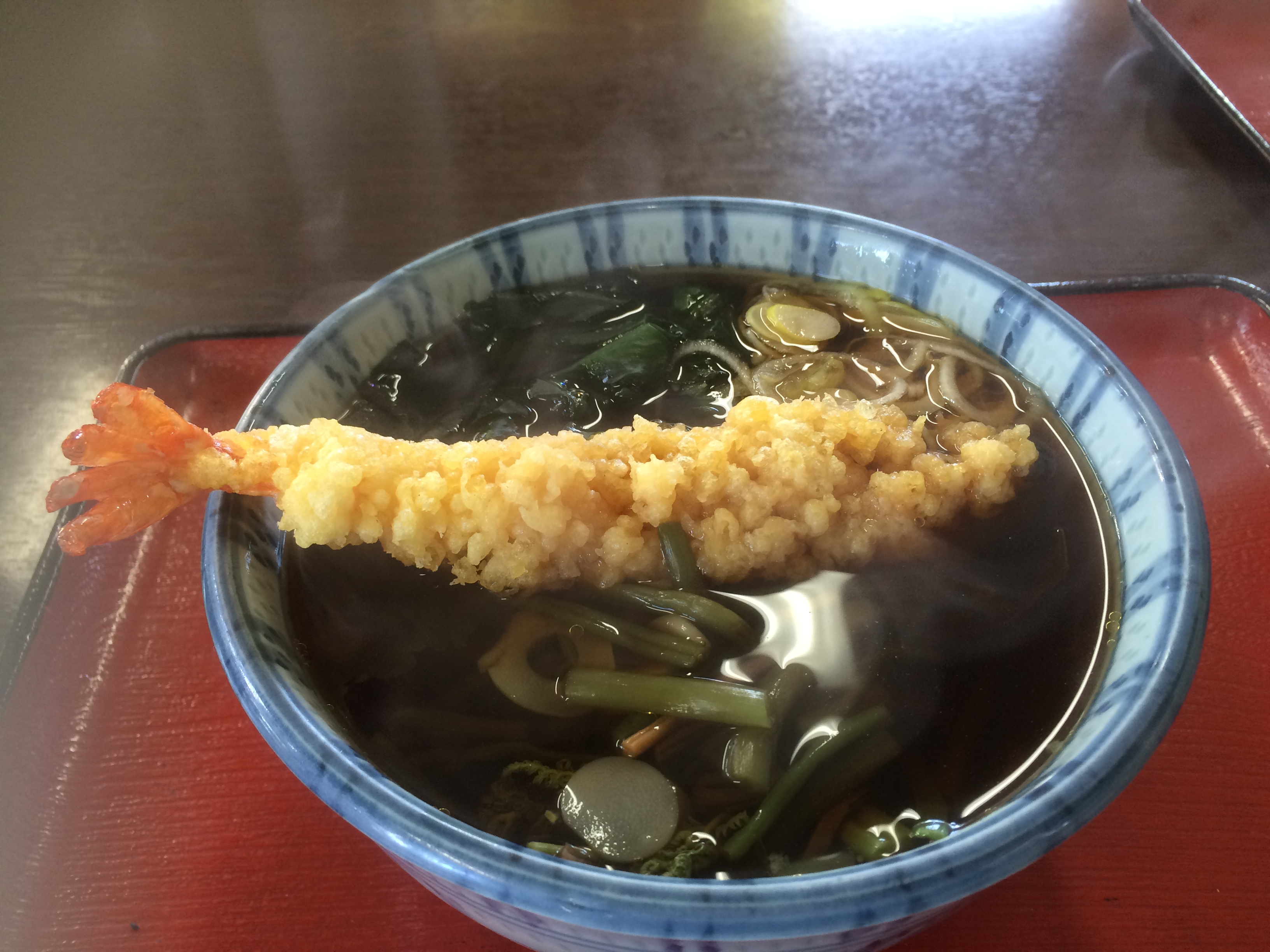 ワカメ、山菜、そして、大好きな海老の天ぷらが入っていました。ごちそうさまでした!(^^)