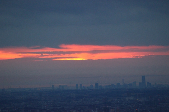 少し曇っており、丸い日の出はみられませんでしたが、都心方面や横浜のビル群は見渡せることができました。